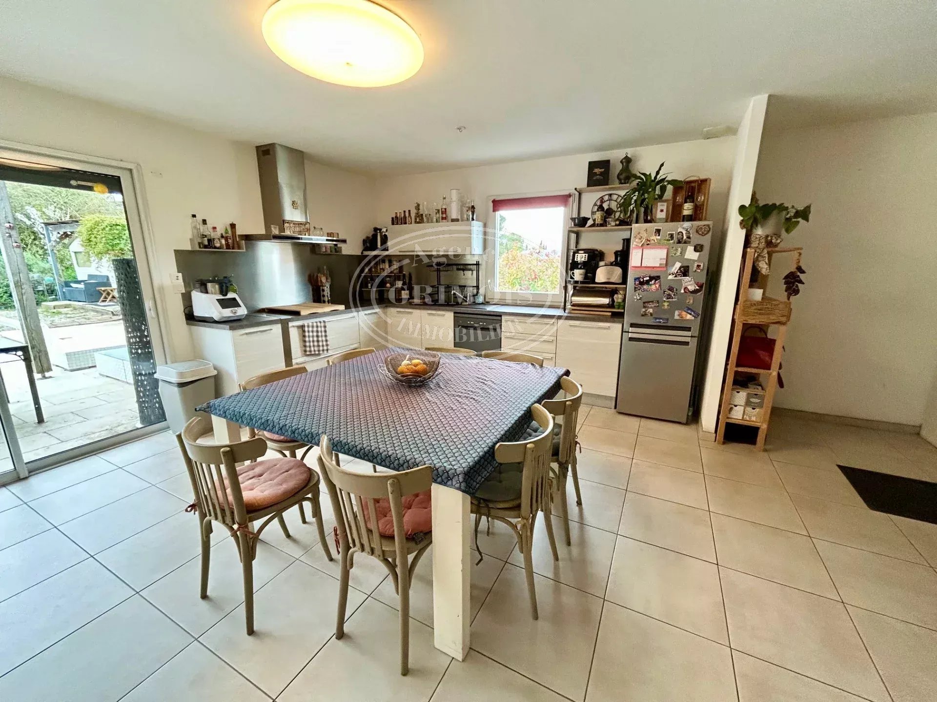 Le séjour permet l'accès à une terrasse sans vis-à-vis et sa piscine béton de 5m x 3m (traitement au chlore/ pompe à PH).
